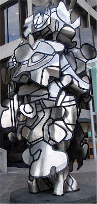 Bow and arrow along the Embarcadero looking back towards the financial district.